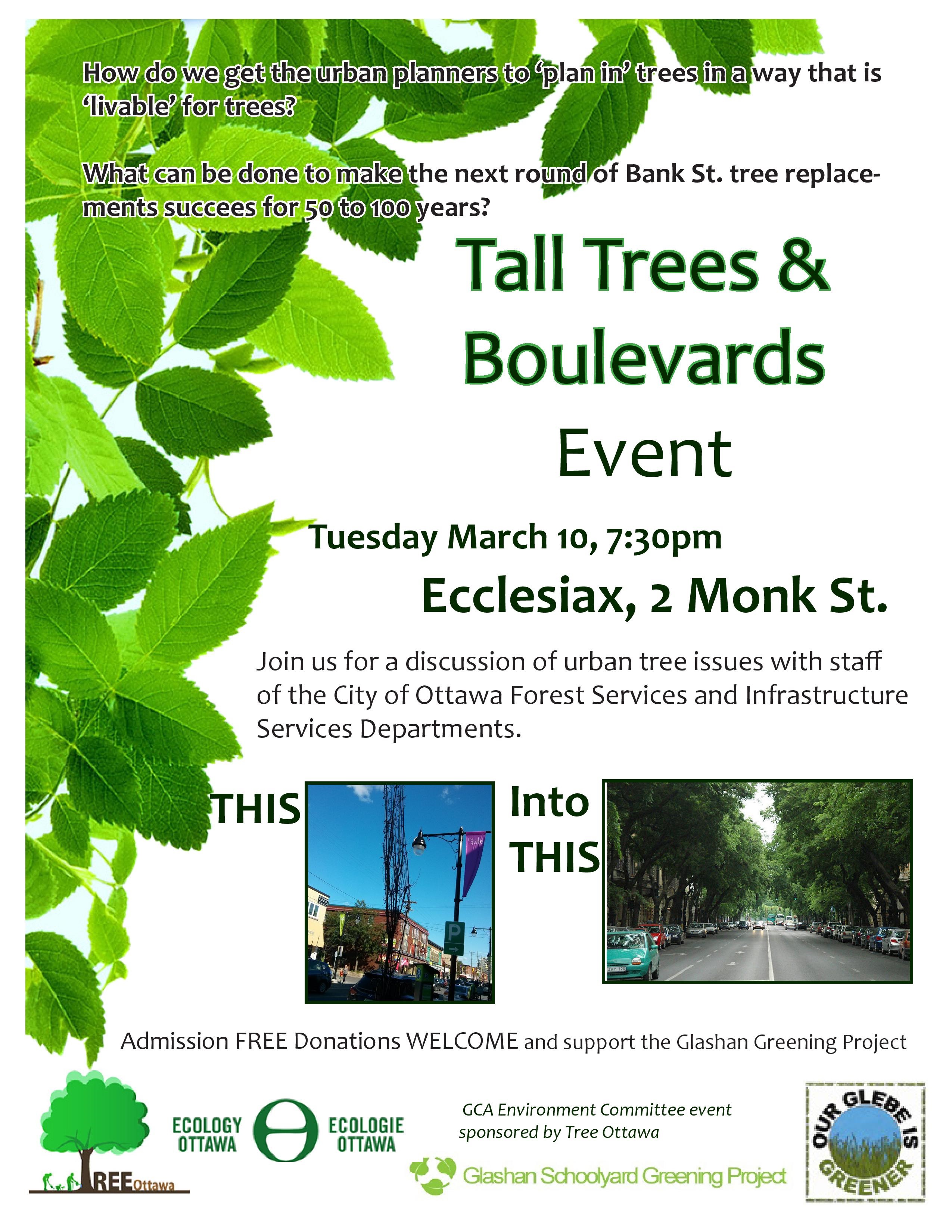I received quite a bit of reader feedback and encouragement. The Glebe Community Association Environment Committee has now organized a public event to have a conversation about these issues this coming Tuesday (see below). Jennifer Shepherd & Nancy Young (Forestry Services) and Joe Mojsej (Infrastructure Services) from the City of Ottawa will contribute short presentations and join in the conversation. Should be good.