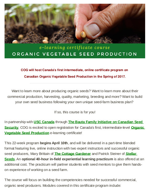 There is also an Organic Seeds course, starting April 10th.