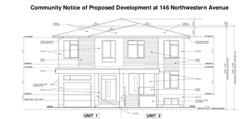 This is advance notice of a redevelopment Application for 146 Northwestern Avenue. We expect that it will be heard by the Committee of Adjustment, Panel 1, on December 6. When the CofA Agenda is posted, we will update this notice with related links to the City web site.