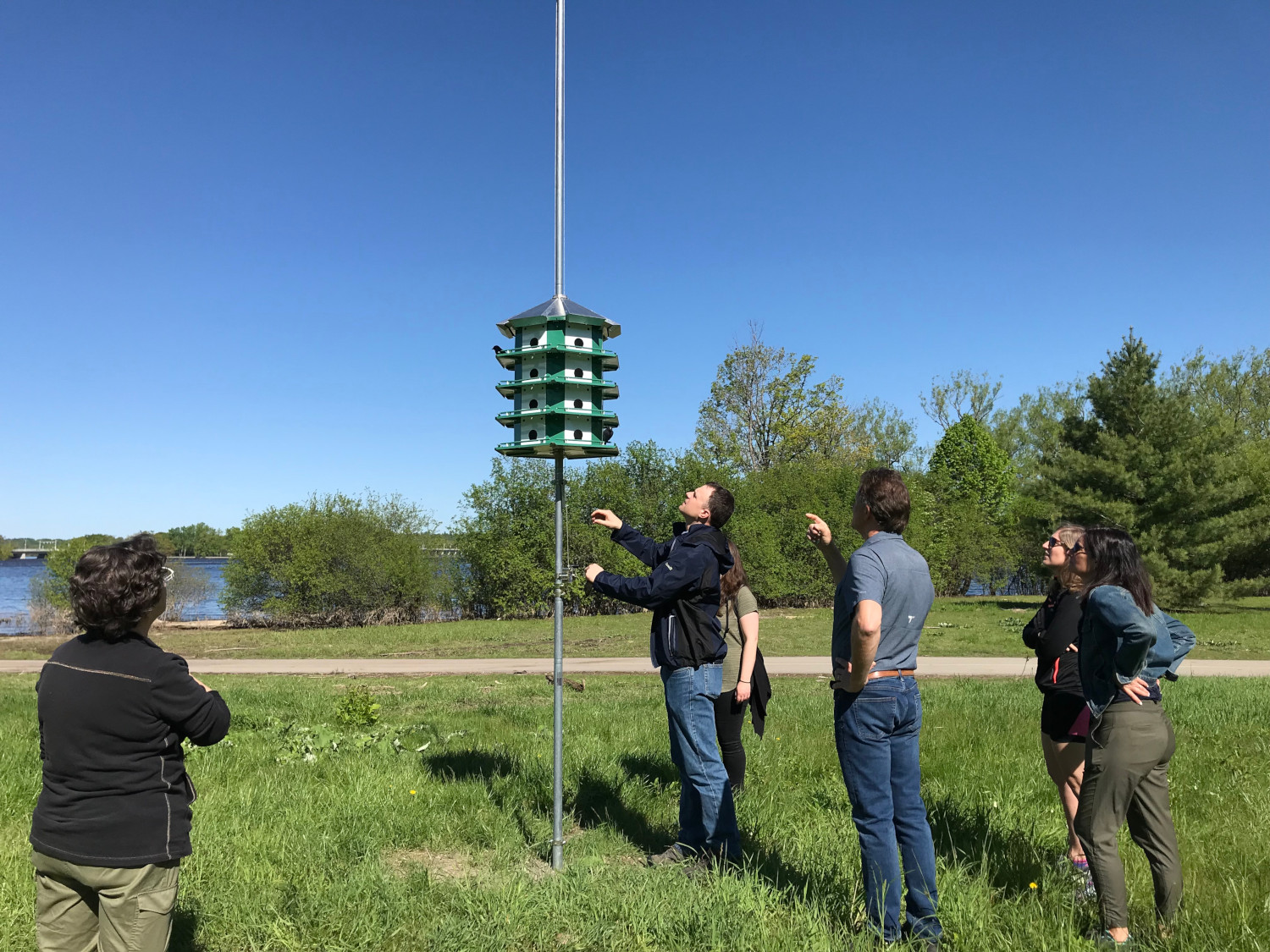 ![[Four decker birdhouse on a tall pole, with river behind]](https://champlainpark.org/wp-content/uploads/2019/06/06jun19-purple-martin-birdhouse-remic-woods-shoreline.jpeg?w=768&h=1024)