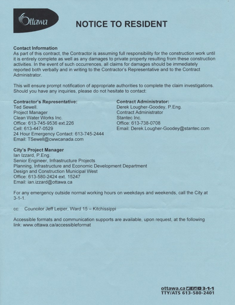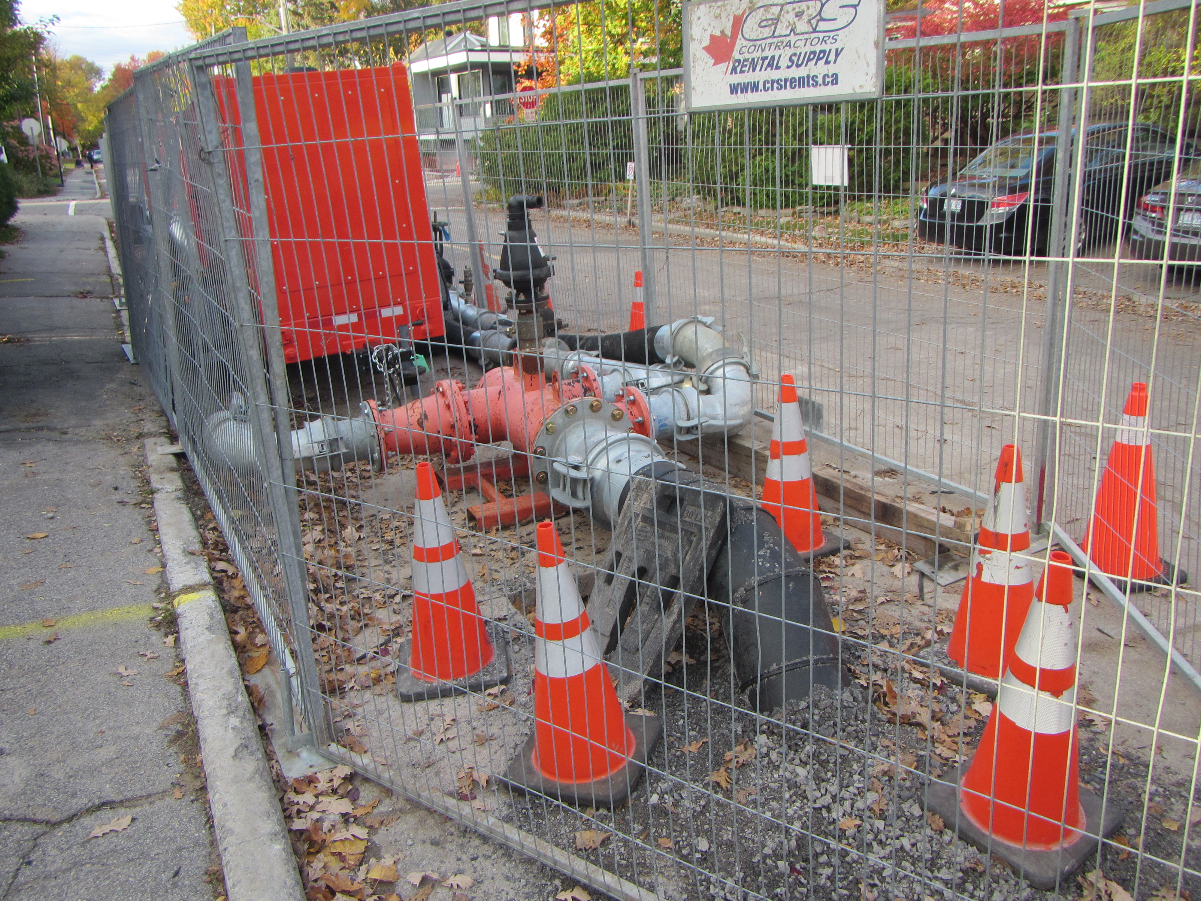 The city’s contractor has been installing a temporary sewer pipe from the corner of Clearview and Keyworth right over the Carleton Avenue bridge and onto Scott Street. Once the sewer under Keyworth has been bypassed, they’ll be relining it to make it last longer (delaying the need to dig it up and replace it).