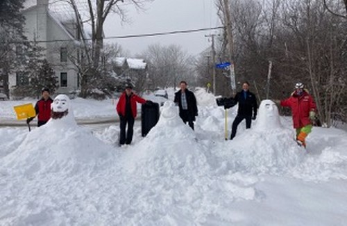 Her most recent addition of Trailhead snow sculptures located in the flower planters in the Champlain Park have also brought a smile to passersby. These were built to celebrate another successful season of the SJAM Winter Trail and the efforts of the volunteers.