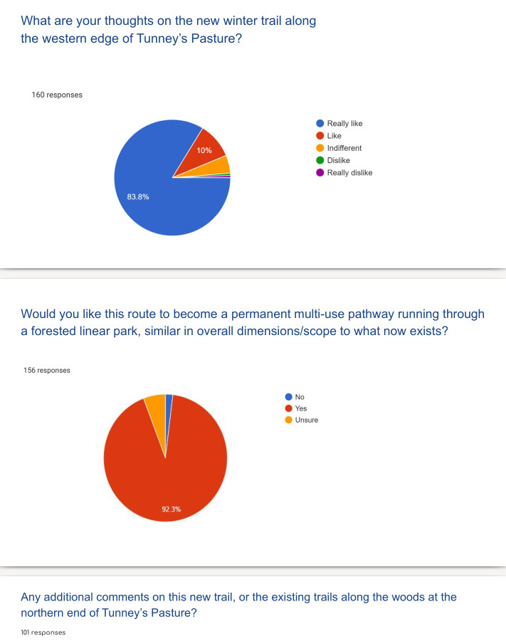 The Neighbours for Tunney’s group (http://www.neighboursfortunneys.ca/) have sent out their Newsletter #7 which includes news about the new Scott Street Ski Trail Connection. Of note are the results of a survey, generally in favour of keeping the new trail: